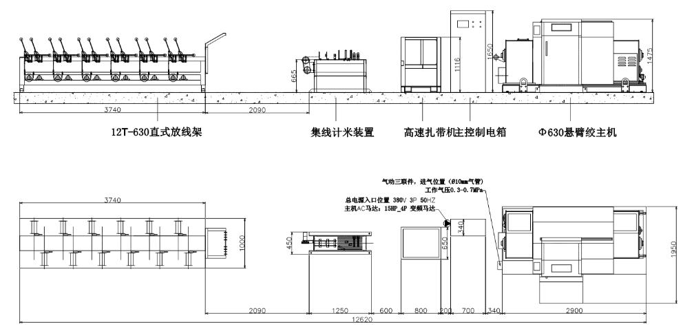 适用于各种电源线,5、超5、6类数据线缆,通讯线缆以及其他特种线缆高速成缆绞合,同时完成包带。